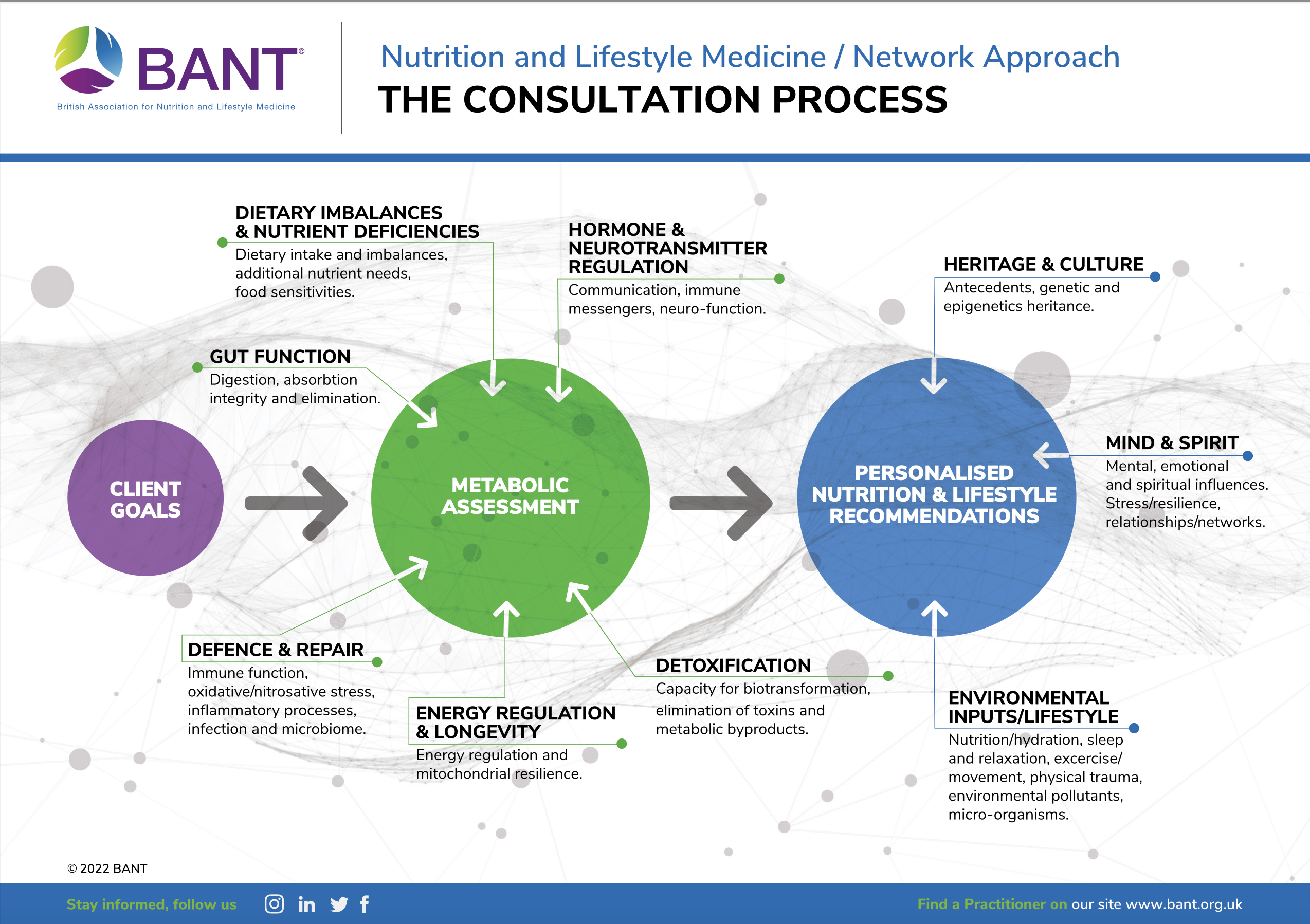 A thorough assessment of your current diet, eating habits, preferences and lifestyle. Body composition analysis, consideration of existing medical conditions including family and medical history. In depth evaluation of the different body systems.